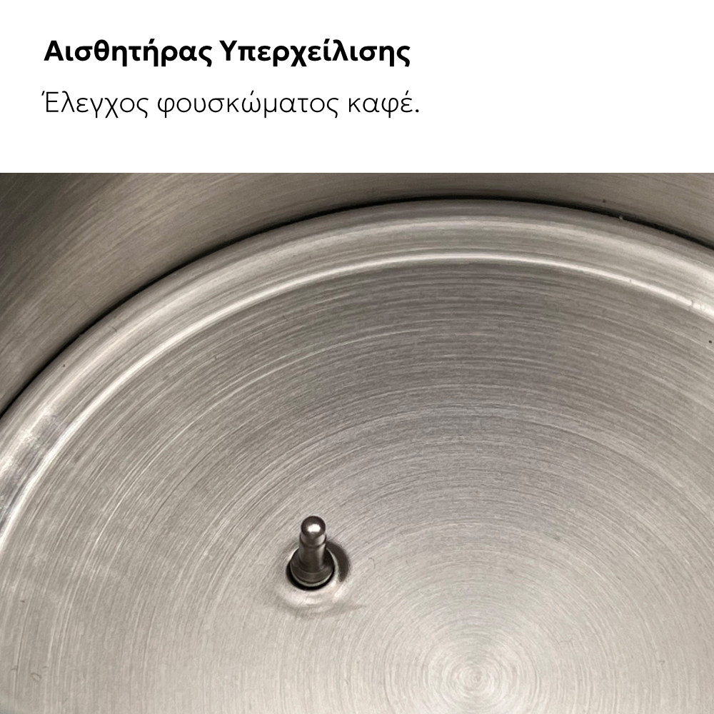 Το κορυφαίο χαρακτηριστικό της συσκευής είναι ο έξυπνος αισθητήρας προστασίας από υπερχείλιση. Η τεχνολογία αυτή ανιχνεύει την άνοδο της στάθμης του καφέ και τερματίζει τη λειτουργία στο σωστό χρόνο, διατηρώντας το καϊμάκι πλούσιο και την κουζίνα σας καθαρή. Επιπλέον, διαθέτει: