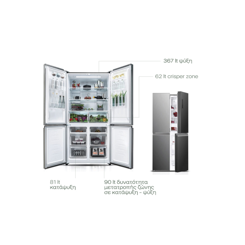 Συνδυάζει προηγμένη τεχνολογία και λειτουργικότητα για να προσφέρει εξαιρετική απόδοση και άνεση. Διαθέτει φίλτρο Anti-Bacterial για την προστασία των τροφίμων σας από βακτήρια και οσμές, ενώ το εξωτερικό Digital Display σας επιτρέπει να ελέγχετε εύκολα τις ρυθμίσεις θερμοκρασίας. Η τεχνολογία inverter στο compressor μοτέρ εξασφαλίζει ενεργειακή απόδοση και αθόρυβη λειτουργία, ενώ η μετατρεπόμενη ζώνη σας δίνει την δυνατότητα μετατροπής κατάψυξης σε ψυγείο. Η τεχνολογία No Frost αποτρέπει τη συσσώρευση πάγου, εξασφαλίζοντας ότι οι τροφές παραμένουν πάντα φρέσκες, και το Open Door Alarm σας ειδοποιεί όταν η πόρτα μένει ανοιχτή, προστατεύοντας την απόδοση του ψυγείου και την εξοικονόμηση ενέργειας.