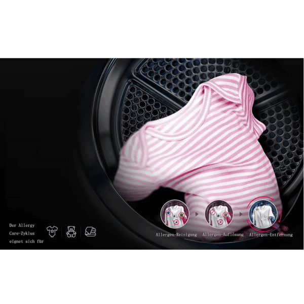 Απαλή φροντίδα – Λειαίνει τις τσακίσεις και μειώνει τη συρρίκνωση. Μια χαμηλή θερμοκρασία χάρη στην τεχνολογία αντλίας θερμότητας μπορεί να εξομαλύνει τις ρυτίδες και να μειώσει τη συρρίκνωση.