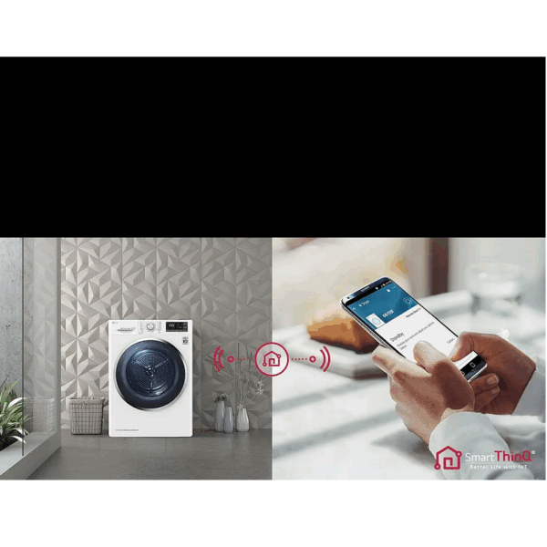 Έξυπνη άνεση με το SmartThinQ® – Από το τηλεχειριστήριο μέχρι τη λήψη πρόσθετων προγραμμάτων, το στεγνωτήριό σας είναι πλέον έξυπνο! Είναι πολύ εύκολο στη χρήση – μπορείτε να έχετε πρόσβαση στις τελευταίες καινοτομίες μέσω WiFi. Smart Diagnosis® (διάγνωση σφαλμάτων).