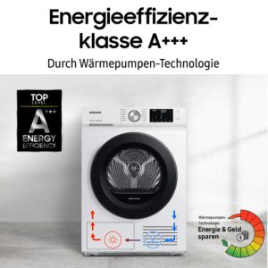 Εξοικονομήστε ηλεκτρική ενέργεια* με την τεχνολογία αντλίας θερμότητας. Η καλύτερη δυνατή ενεργειακή απόδοση A+++ επιτυγχάνεται μέσω της χρήσης αντλίας θερμότητας και κλειστού κυκλώματος θέρμανσης. Οι χαμηλότερες θερμοκρασίες προστατεύουν επίσης τα υφάσματα.